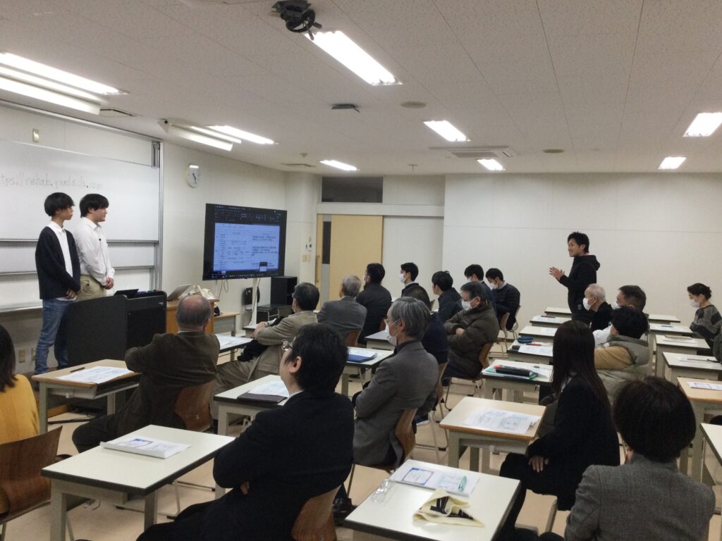 当日は、理学療法学科・作業療法学科の教員をはじめ、リハビリテーション分野の専門家が多数参加し、学生による開発とは思えない完成度の高さに、驚きと高い評価の声が寄せられました。