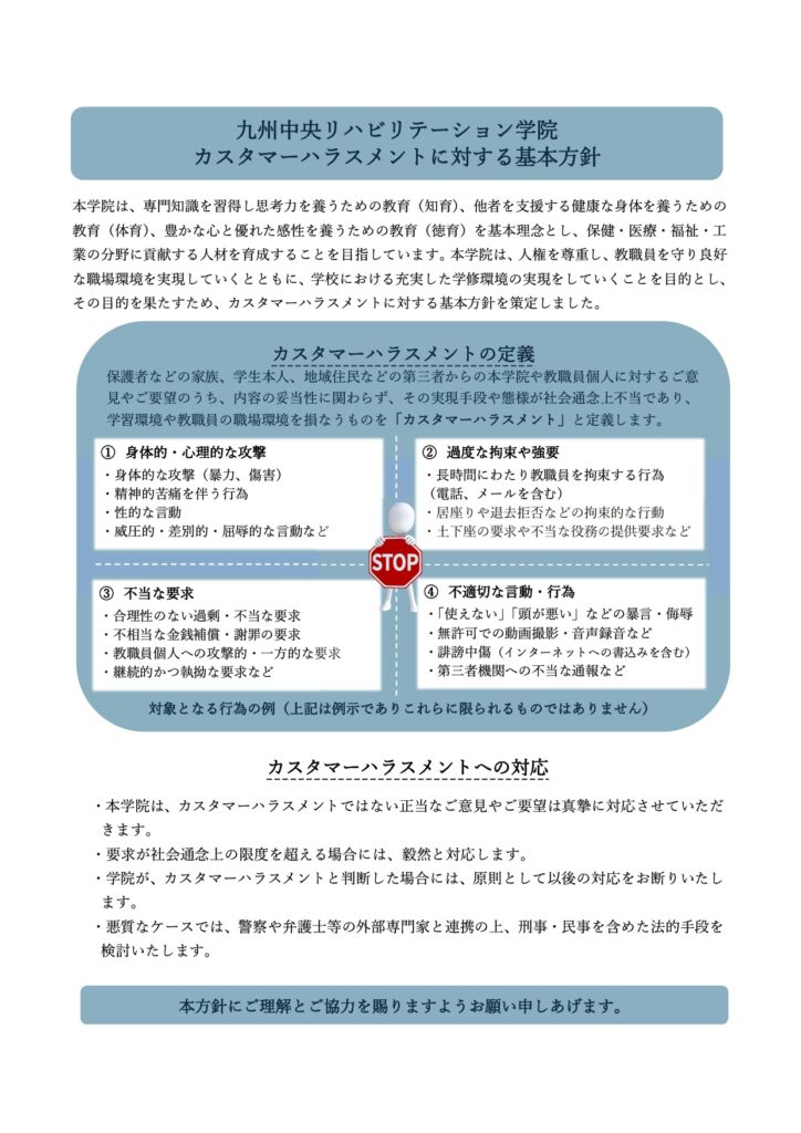 本学のカスタマーハラスメントに対する基本方針情報を掲載いたします。